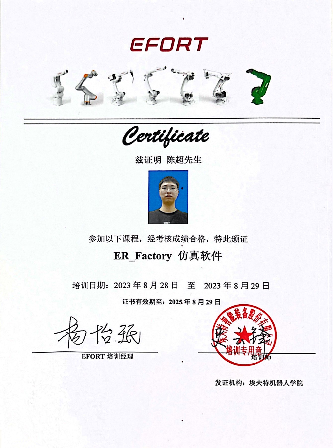 陈超24-26年爱普生证书