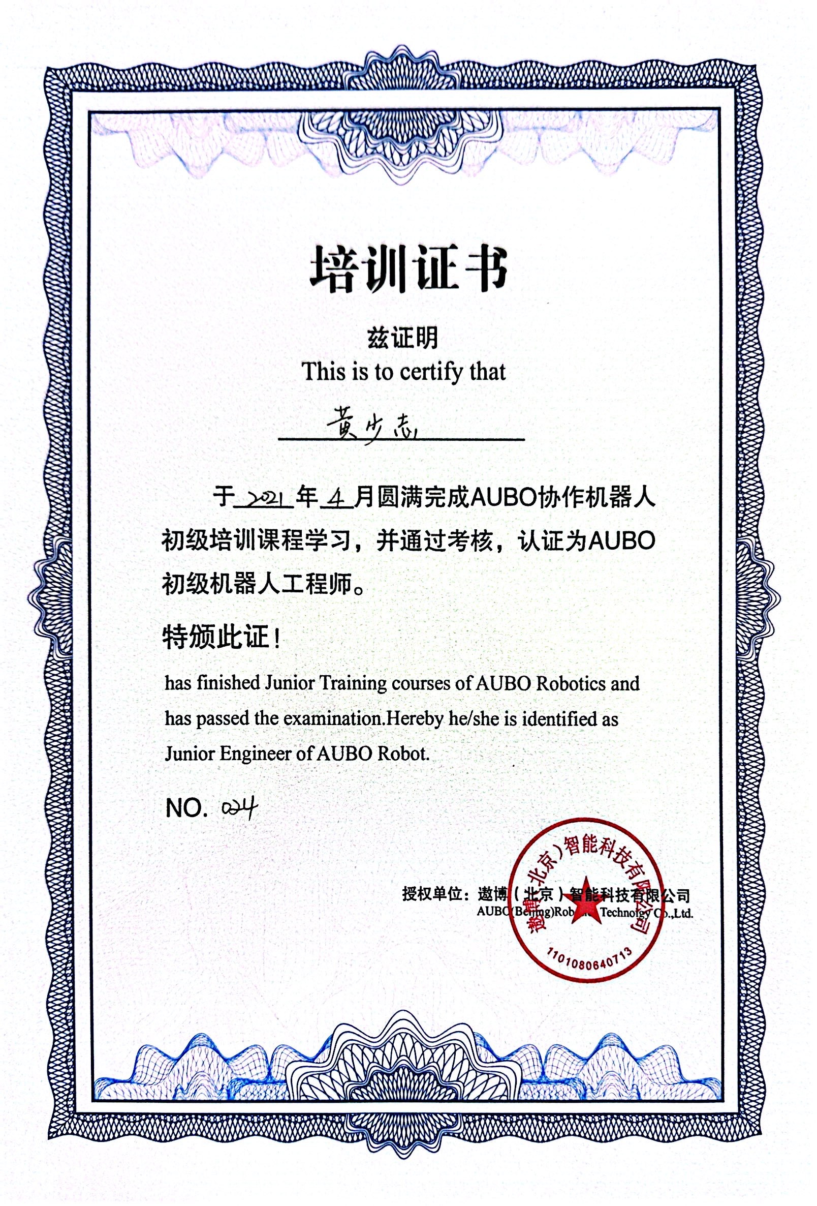 24年黄少志发那科证书