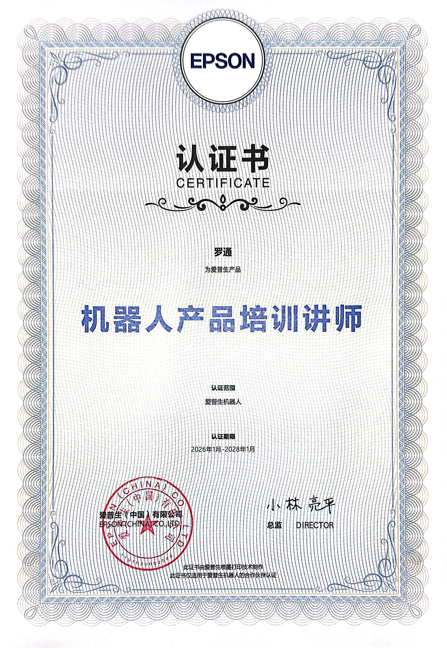 罗通26-28年爱普生证书