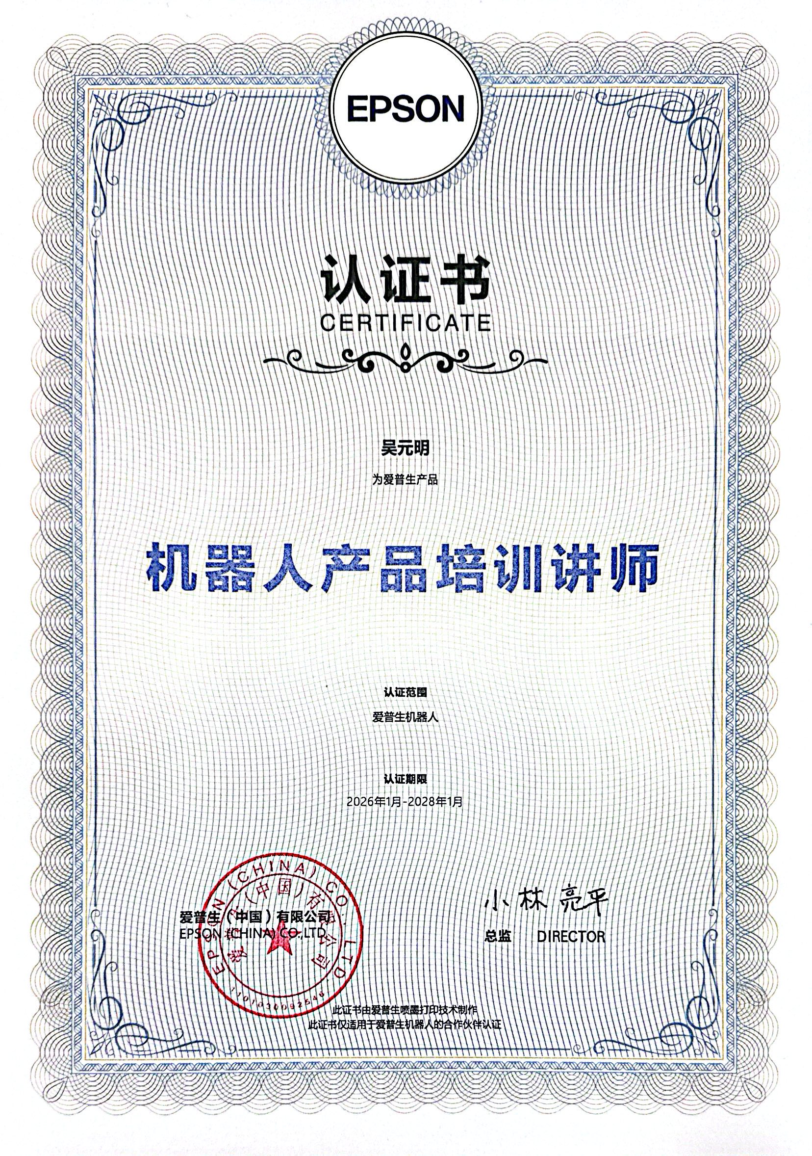 刘深龙26-28年爱普生证书